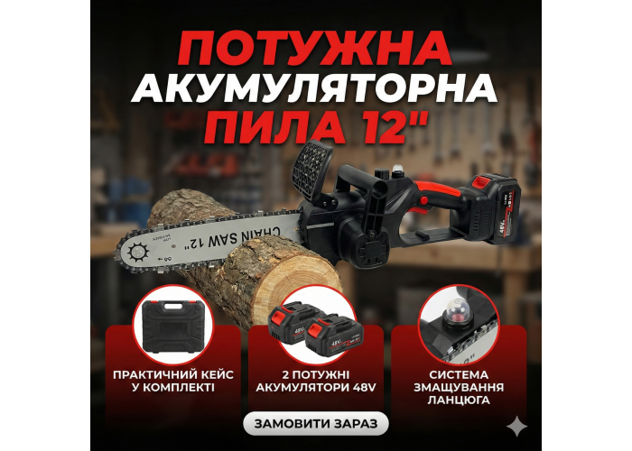 Акумуляторна ланцюгова пила призначена для виконання садових і побутових робіт, як-от обрізання гілок, розпилювання дров невеликого діаметра та догляд за деревами. Компактний формат і акумуляторне живлення дають змогу використовувати інструмент без під'єднання до електромережі.