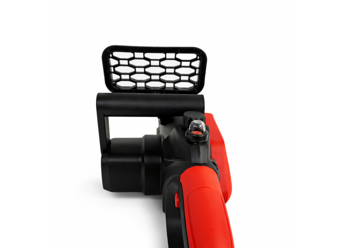 Корпус виготовлений із міцного пластику чорно-червоному кольорі. Для зручності утримання передбачена основна ручка з гумовими вставками, а також додаткова передня ручка для впевненішого контролю інструмента. На корпусі розміщена кнопка вмикання і кнопка блокування пуску.
