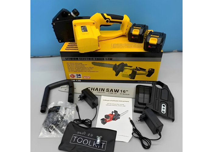 Електропила — це потужний інструмент для роботи на відкритому повітрі. Завдяки 16-дюймовому лезу вона справляється з різкою деревини та гілок різного діаметра, що робить її ідеальною для садівників, тесляків і власників приватних будинків. Дві батареї забезпечують тривалий час роботи без потреби частого підзаряджання. Акумуляторна пила — це ідеальне рішення для тих, хто цінує мобільність, продуктивність і комфорт.