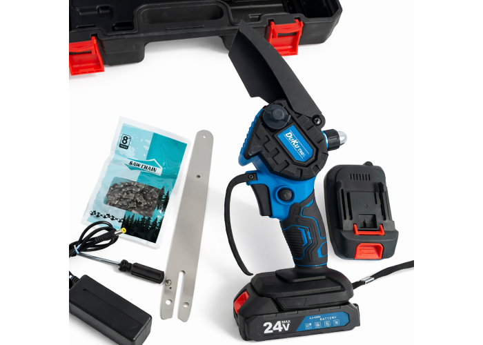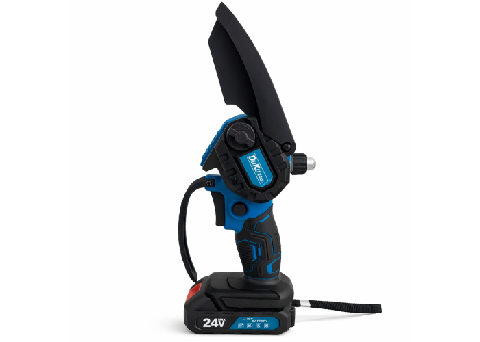 Акумуляторна мініпила DUC2000z — це потужний пристрій, обладнаний 24-вольтним акумулятором ємністю 5 А·год, забезпечуючи надійну й ефективну роботу тривалий час.