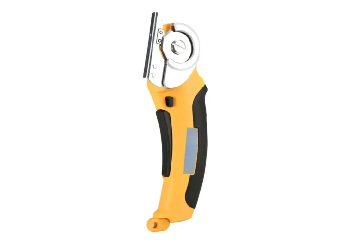 Акумуляторний розкрійний дисковий ніж MT-MC 4,2V — це компактний електричний інструмент для швидкого й акуратного розкроювання тканин та інших листових матеріалів. Роторний диск із міцної сталі дає рівне чисте різання, не тягне і не рветься матеріал, дає змогу працювати як прямим лініям, так і плавним вигинам.