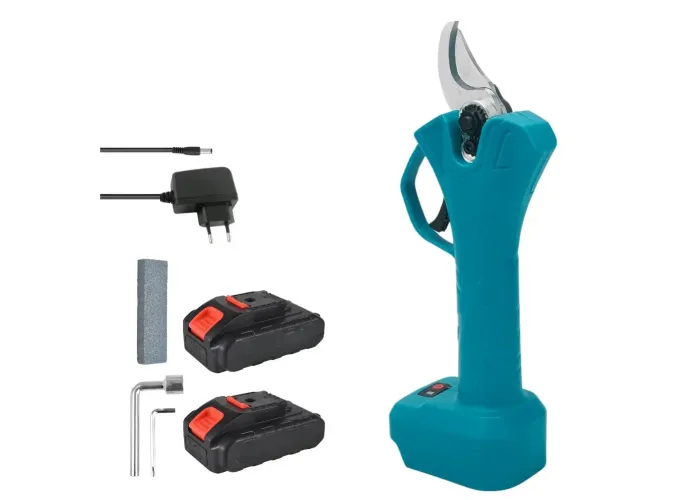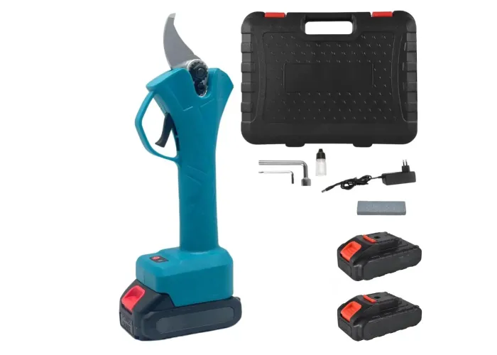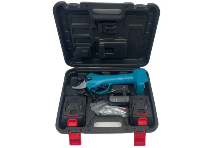 Акумуляторний садовий секатор у кейсі — це зручний інструмент для садівників і професійних садівників, який використовується для обрізання молодих пагонів і тонких гілок дерев і чагарників, як плодових, так і декоративних під час збирання врожаю винограду, догляду за садовими квітами тощо. забезпечуючи чисті та акуратні зрізи без зайвого зусилля.