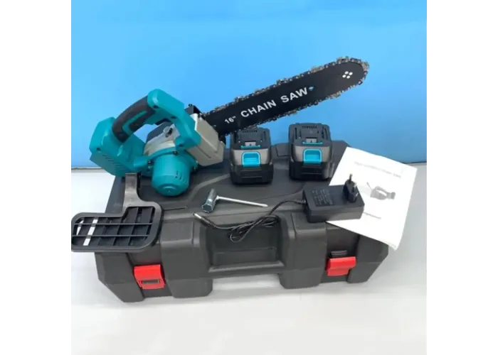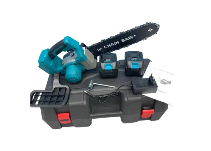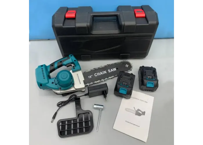 Ланцюгова акумуляторна пила 16" з двома акумуляторами 21V Electric Синій Ланцюгова пила у валізі