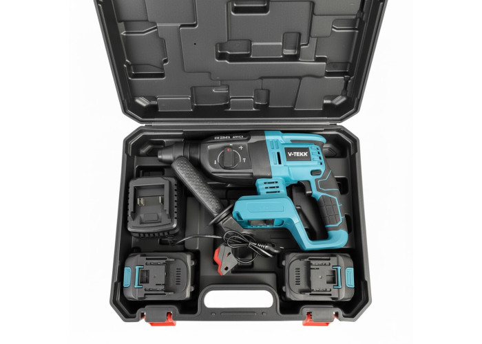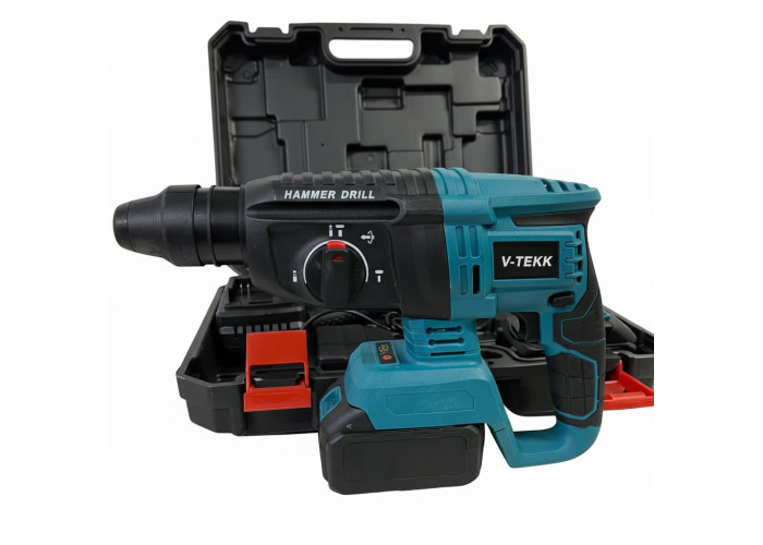 Акумуляторний дриль-перфоратор V-TEKK — потужний універсальний інструмент для свердління, закручування й ударного буріння без під'єднання до мережі.