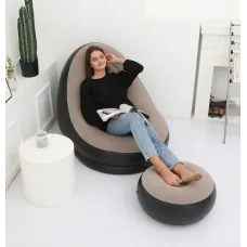 Надувне садове крісло з пуфиком Air Sofa Comfort zd-33223, велюр, 76*130 см
