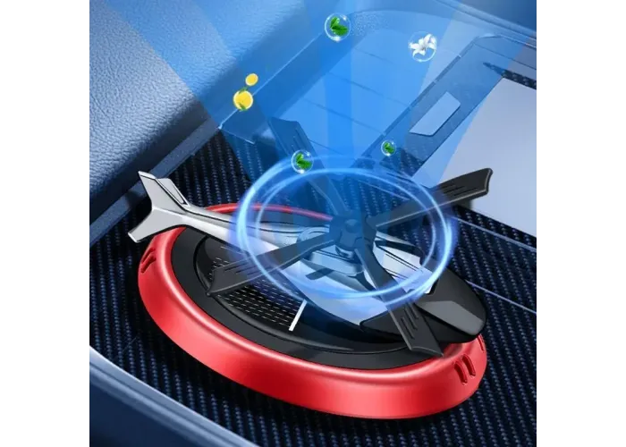 Працює на сонячній батареї, завдяки якій вентилятор обертається й допомагає поширювати аромат салоном автомобіля.
