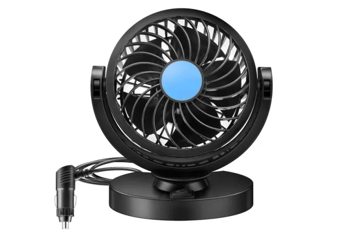 Автомобільний вентилятор — зручне пристрій, який призначений для створення комфортної температури в салоні. Усім відомо, що кузов машини захищає водія й пасажира від різних зовнішніх негативних чинників, яких як осади, вітру та ін, але він не здатний вберегти від спеки. Ця модель з подвійним вентилятором збільшує площу потоку повітря для швидкого охолодження. Попри свій малий об'єм, він має велику потужність для охолодження повітря.