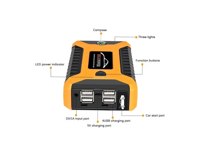 Пускозарядний пристрій Jumpstarter JX27 99800 мА·год — це багатофункціональний пусковий і зарядний пристрій. З ним ви можете запустити двигун автомобіля у разі розрядженого акумулятора, а також зарядити смартфон, планшет, камеру або будь-який інший електронний пристрій.
