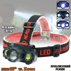 Ліхтар налобний COB XPE поєднує в одному корпусі два незалежні одна від одної ліхтарики. У кожного своя кнопка керування та вмикання/вимикання, перемикання режимів здійснюється окремою кнопкою для кожного з ліхтариків.