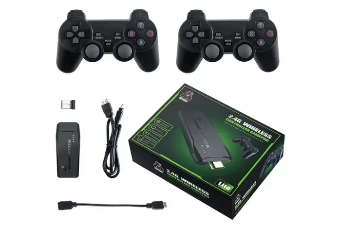 Представляємо новинку — ігрова приставка з іграми під'єднується до телевізора або монітора через порт HDMI. Ігрова консоль M8 дуже компактна та складається з двох бездротових джойстиків та одного бездротового адаптера з вбудованими іграми. Mini Game Stick зручний у використанні, позаяк джойстики не з'єднуються дротами. Джойстики живляться від двох мініпальчикових батарейок ААА (не входять до комплектації). До комплекту входить два бездротові джойстики. Підтримка відеовиходу 4K Ultra HD TV 1080P моніторів і проєкторів із входом HDMI. Приставка підтримує встановлення нових ігор за допомогою карти microSD.