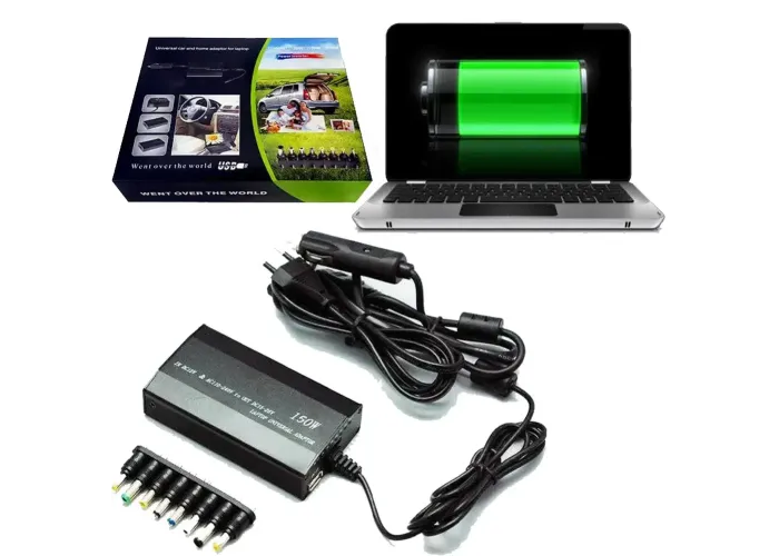 Мережевий і автомобільний зарядний універсальний пристрій для ноутбуків — це зручне технічне рішення, для підзаряджання ноутбука від електромережі 220 V або акумулятора, заміна вихідного з ладу оригінальному блоку живлення.