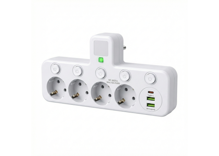 Розумне керування живленням: Кожна з 4 євро-розеток оснащена власним індивідуальним LED-вимикачем. Це дозволяє знеструмлювати прилади окремо, що значно економить електроенергію та продовжує термін служби вашої техніки.