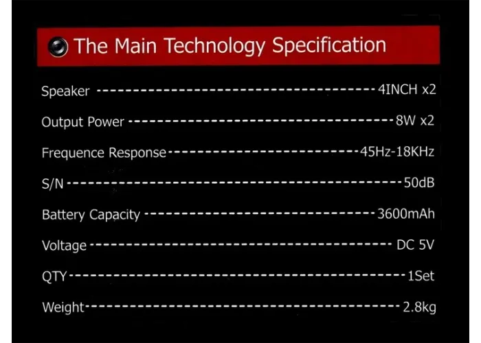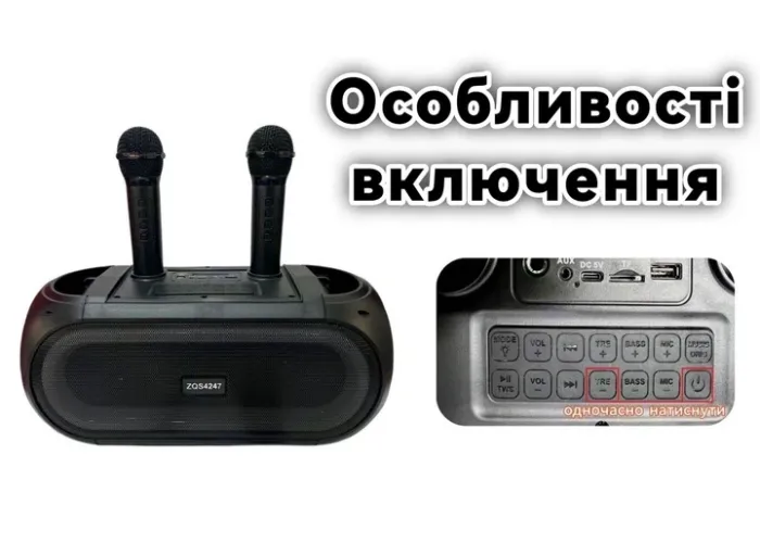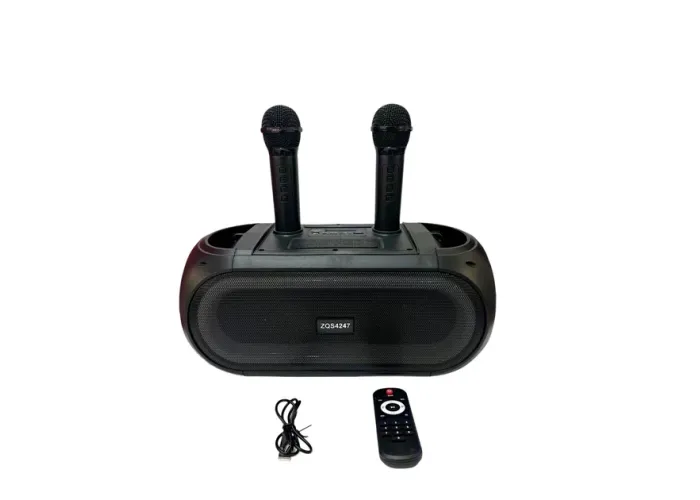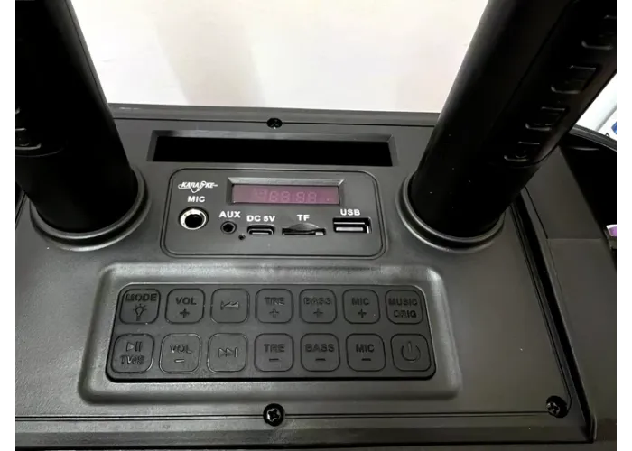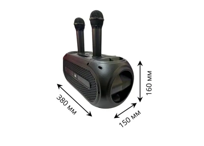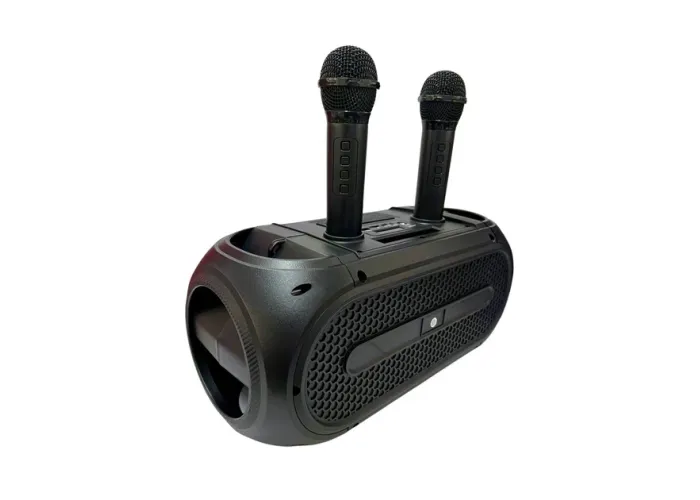 Головна особливість моделі — наявність двох бездротових мікрофонів, що дозволяє використовувати колонку для караоке. Це ідеальний варіант для вечірок, свят або відпочинку з друзями та сім’єю.