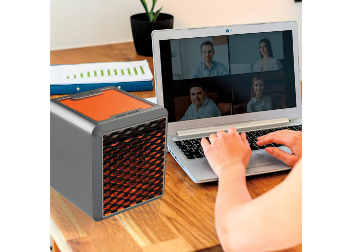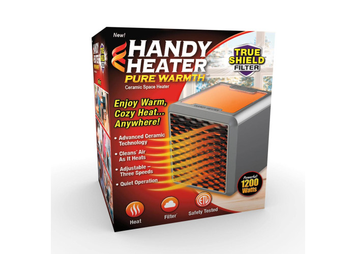 Нагрівач Handy Heater Pure Warmth — це керамічний портативний нагрівач для особистого простору у вітальні, кабінеті, дитячій або офісній кімнаті. Він має знижений шум роботи, кілька режимів нагрівання, вбудовану підсвітку та знімний фільтр, що зменшує кількість частинок пилу й алергенів у повітрі. Нова технологія обігрівання повітря, що надходить, утримує в ньому вологу, запобігаючи сухості, що сприятливо впливає на стан людини, зменшує свербіж і подразнення шкіри. Потужність нагрівача 1500 Вт, цього досить, щоб швидко нагріти невелику зону навколо людини та створити комфортний мікроклімат.