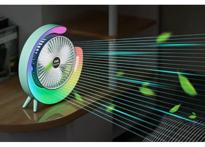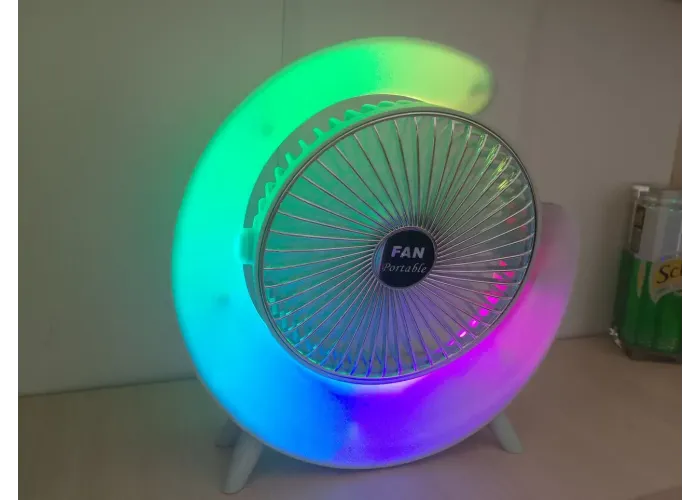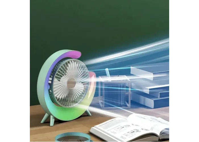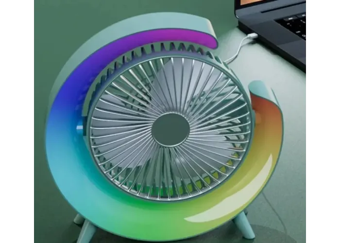 Відчуйте універсальність компактного вентилятора з RGB-підсвіткою, ідеального для різних умов, як-от настільні комп'ютери, офіси, автомобілі та походи. Насолоджуйтеся освіжним вітерцем, хай куди б ви пішли. Портативний настільний вентилятор обладнаний функцією нахилу на 180 градусів, що дає змогу регулювати потік повітря на свій смак.