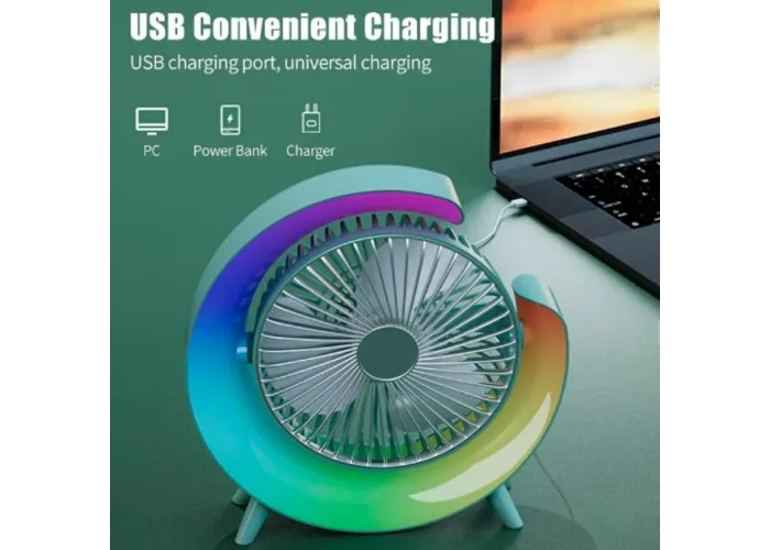 Вентилятор електричний USB 3-швидкісний із кольоровою підсвіткою 180° безшумний