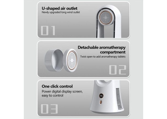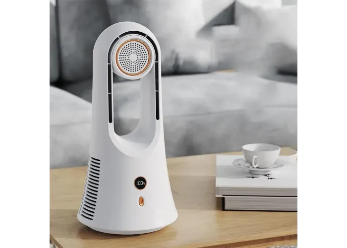 1. Безлопатевий Настільний вентилятор. Цей настільний вентилятор безпечний для немовлят і дітей завдяки безлопатевій конструкції, інноваційній безлопатевій, безпечній решітці на вході вітру, вона збільшує об'єм вітру під час видування м'якого вітру, безшумний, створить для вас тиху та прохолодні умови.