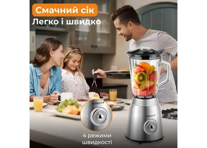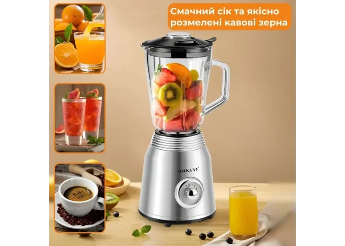 Багатофункціональність. Блендер Sokany має широкий спектр функцій, включно з змішуванням, подрібненням, збиванням і багатьма іншими. Ви зможете легко приготувати різні смузі, коктейлі, соуси, пасти та інші кулінарні шедеври.