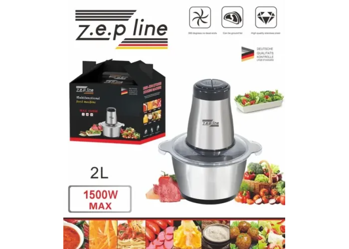 Блендер подрібнювач Zepline 1500 Вт із металевою чашею на 2 літри Zepline ZP-051— має 2 робочі режими, які легко перемикаються за допомогою кнопок на верхній частині подрібнювача. Ідеально підходить для подрібнення різних інгредієнтів — від овочів і фруктів до м'яса, горіхів і сухофруктів.