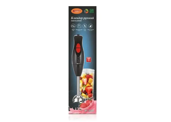 Ручний блендер BITEK BT-328B — надійний і потужний помічник на кухні, що ідеально підходить для приготування різноманітних страв. З його допомогою можна легко змішувати майонез, соуси, дитяче харчування, а також подрібнювати цибулю, лід, сир, м'ясо, фрукти та овочі.