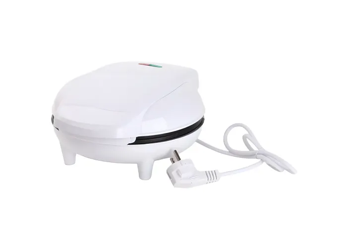Робочі поверхні обладнані антипригарним покриттям, яке запобігає прилипанню тіста, дає змогу легко витягувати готову випічку та спрощує очищення приладу після використання. Корпус виготовлений із термостійкого пластику білого кольору. Для зручності й безпеки експлуатації передбачені нековзні ніжки, що забезпечують стійкість на столі, і світловий індикатор готовності до роботи.