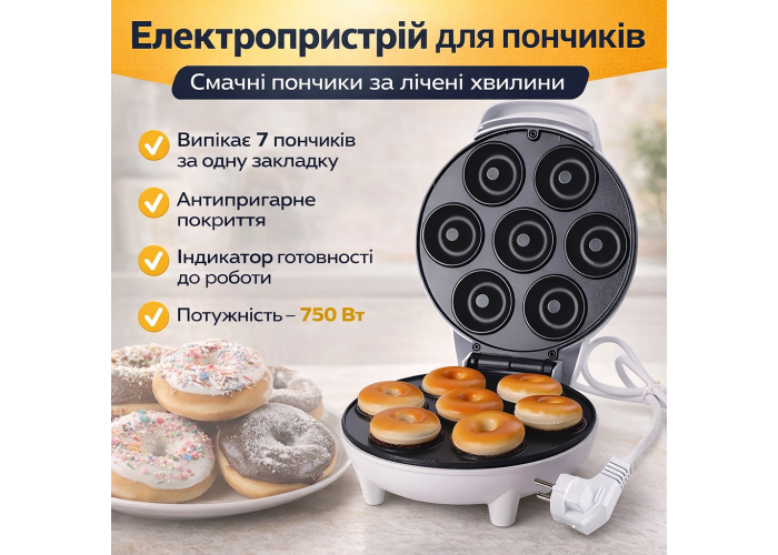 Продуктивність: Можливість випікання 7 пончиків за один цикл.