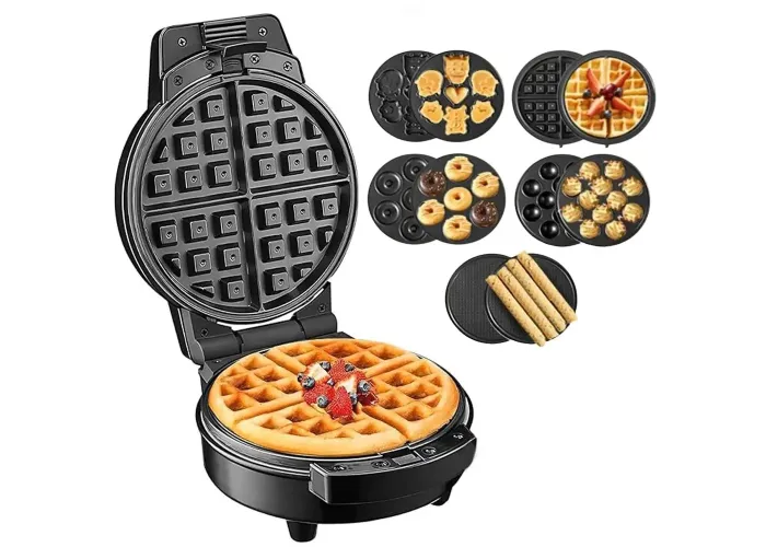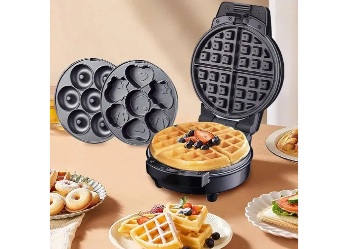 Мультипекар Sokany SK-08105 — це універсальний кухонний прилад, який замінює відразу кілька пристроїв. Завдяки 5 змінним панелям ви зможете готувати бельгійські вафлі, хрусткі коржі, апетитні пончики, горішки з начинкою та фігурне печиво. Антипригарне покриття забезпечує легкість у приготуванні та очищенні, а компактний дизайн робить його зручним навіть для невеликої кухні.