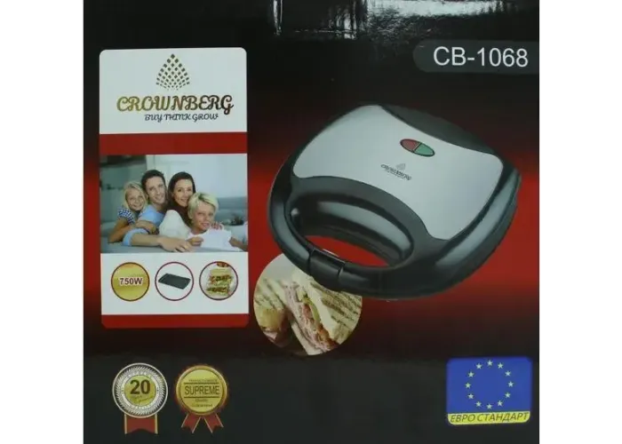 Сендвічниця-гриль бутербродниця Crownberg CB-1068 750W Black/Silver