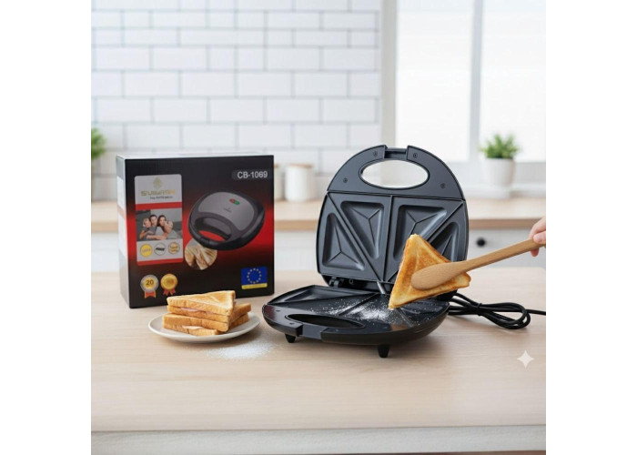 Сендвичница має пластини для рівномірного приготування продуктів. Прилад може приготувати сендвічі та гарячі бутерброди, які будуть чудовим варіантом на сніданок або навіть на святковий стіл для гостей.