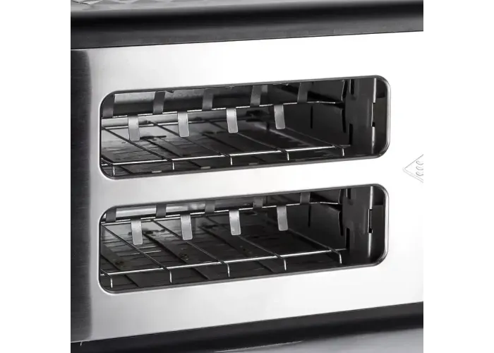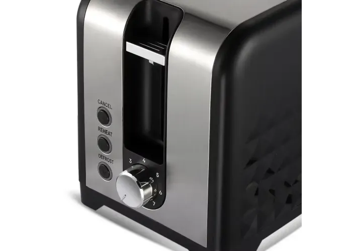 Стильний корпус з неіржавкої сталі з чорною мікрокристалічною панеллю не тільки надає пристрою сучасного вигляду, але й робить його стійким до пошкоджень і легким у догляді. Зручне механічне керування із 7 рівнями підсмажування дає змогу вибрати ідеальний ступінь кришталевості — від злегка підрум'яного до насиченого золотистого відтінку.