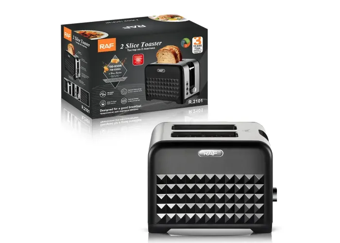 RAF R.2101 підтримує кілька режимів роботи, включно з стандартним підсмажуванням, підігріванням та розморожуванням хліба. Завдяки функції автоматичного центрування скибочки рівномірно підсмажуються з обох боків. А вбудований захист від перегрівання й автоматичне вимкнення гарантують безпеку під час використання.