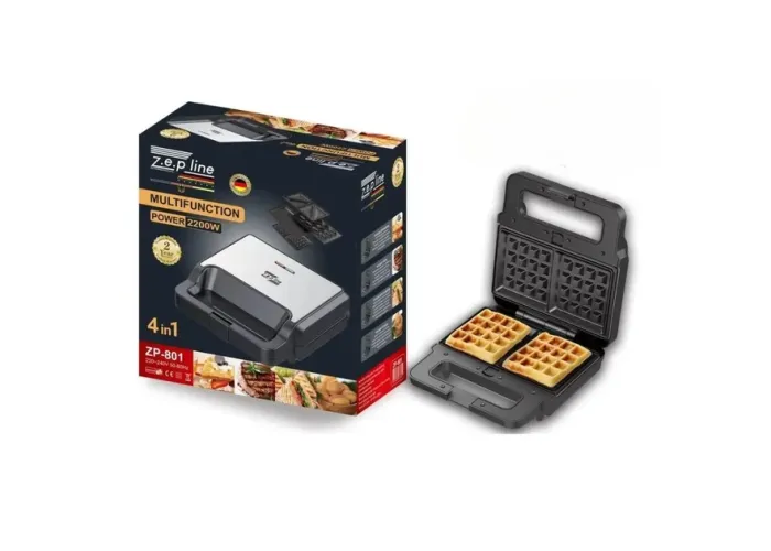 Вафельниця 4в1 Zepline 2200W ZP-801 — багатофункціональна сендвічниця з 4 змінними насадками з антипригарним покриттям, заощадить місце на Вашій кухні та зробить приготування різноманітних страв швидким і простим. З нею Ви можете швидко приготувати хрусткі сендвічі, пишні вафлі, соковиті стейки та на десерт, всіма улюблені, горішки зі згущенням!