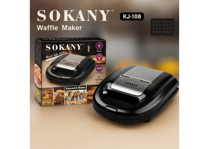 Вафельниця Sokany KJ-108W 750W — це невеликий кухонний пристрій для приготування бельгійських вафель. Нагодувати дитину, здивувати друзів і просто приготувати смачний сніданок. Електрична вафельниця не тільки спрощує процес приготування вафель, але також гарантує безпеку використання — жодних опіків. Все готується швидко та просто.