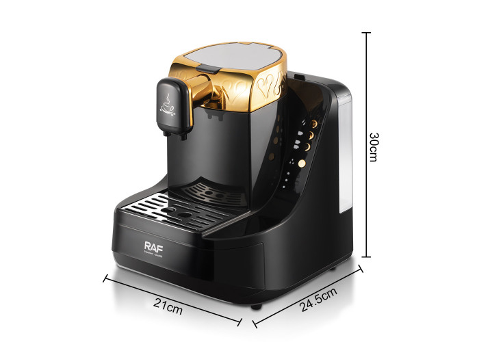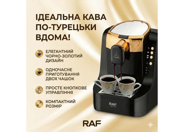 Опис Електрична турка RAF R.111 — це ідеальне рішення для прихильників справжньої кави по-східному, які цінують свій час. На відміну від класичної турки, вам не потрібна плита: пристрій працює від мережі та готує ароматний напій за лічені хвилини. Компактні розміри та стильний дизайн роблять цю кавоварку чудовим вибором для дому, офісу або навіть поїздок. Об'єм 0.5 літра дає змогу приготувати відразу 3-4 чашки бадьорої кави. Корпус виготовлений із якісного термостійкого пластику, а зручна ручка не нагрівається, гарантуючи безпеку використання. Прихований нагрівальний елемент із неіржавкої сталі гарантує довгий термін експлуатації та легкий догляд за приладом.