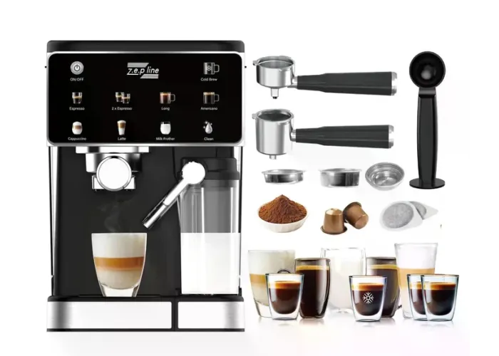 Відкрийте для себе Zepline ZP-6806 — сучасну багатофункціональну кавомашину, яка подарує вам ідеальну каву будь-якої миті. Вона легко готує як класичний гарячий еспресо, так і освіжний Espresso Cool, який ідеально підходить для спекотної погоди.