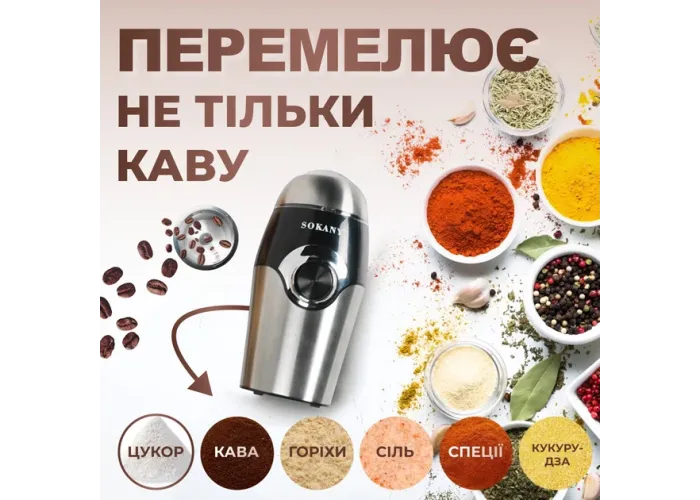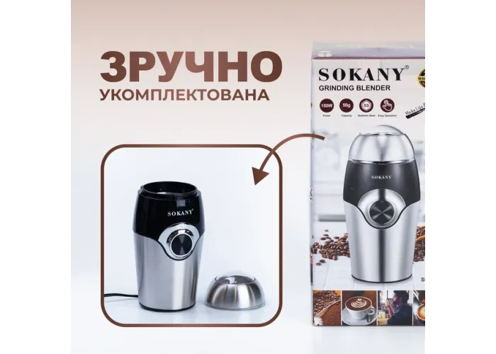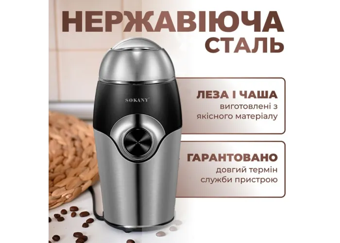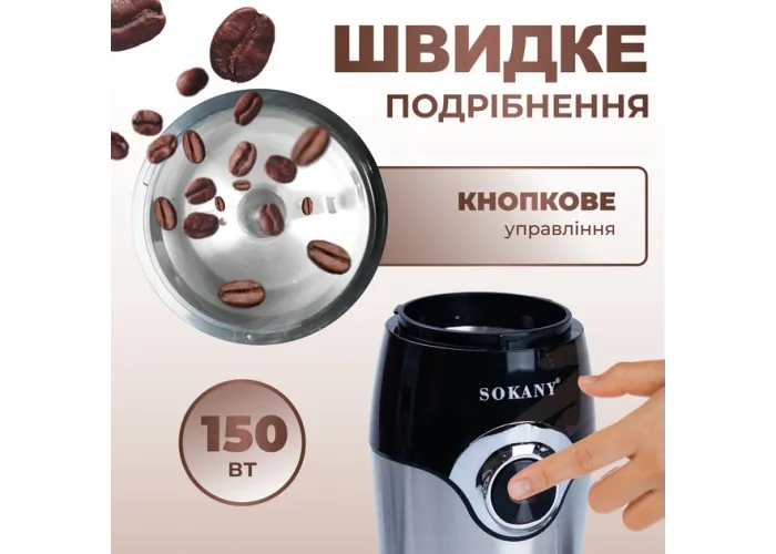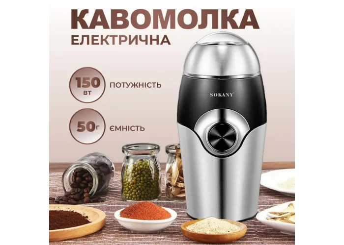 Електрична кавомолка Sokany SK-3024 - Відкрийте ідеальний спосіб приготування кави за допомогою кавомолки Sokany SK-3024. Ця компактна та потужна кавомолка з електричним приводом має такі переваги: