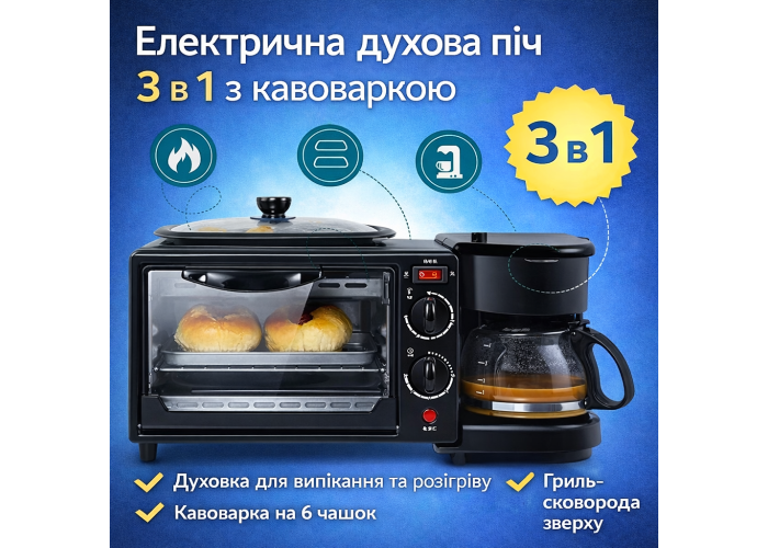 Формат 3 в 1: духовка, кавоварка та гриль-сковорода