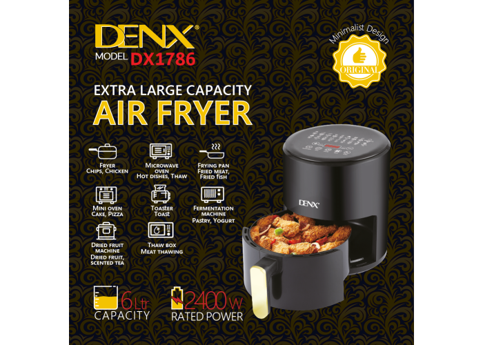 Мультипіч (аерофритюрниця) DENX DX1786 — це революція на вашій кухні. Завдяки технології високошвидкісної циркуляції гарячого повітря, вона рівномірно пропікає продукти з усіх боків, створюючи ідеальну золотисту скоринку та зберігаючи соковитість усередині. Забудьте про бризки олії та довге очікування розігрівання духовки. Просто виберіть одну з 8 автоматичних програм на зручній сенсорній панелі або налаштуйте температуру та час вручну для реалізації будь-якого кулінарного рецепта. Містка 6-літрова чаша з антипригарним покриттям дає змогу приготувати вечерю для великої родини або компанії друзів за один раз. Готуйте все: від картоплі фрі та курячих крилець до стейків, овочів і навіть випічки.