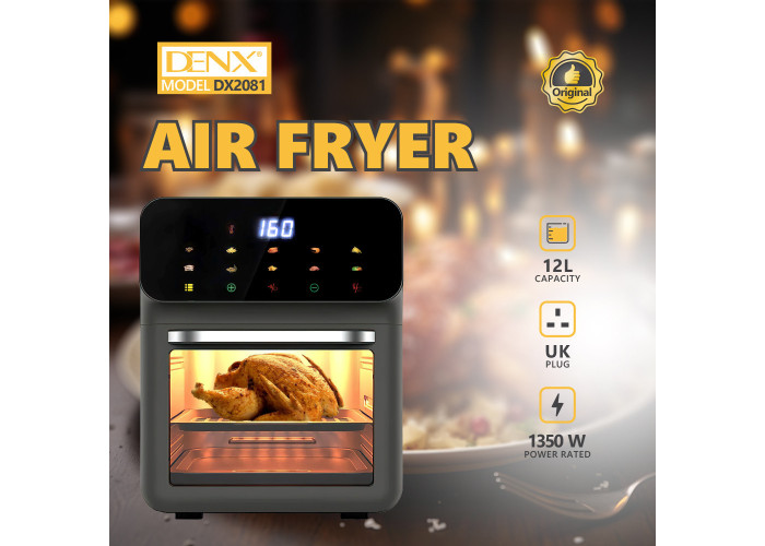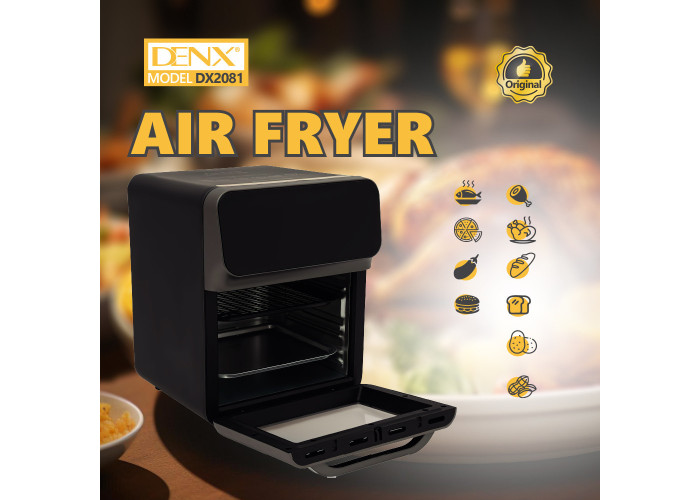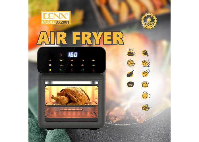 Мультипіч (аерофритюрниця) DENX DX2081 — багатофункціональний кухонний прилад із технологією гарячого повітря, який дає змогу готувати різноманітні страви з мінімальною кількістю олії. Має велику камеру 12 л, зручне сенсорне керування з LED-екраном і потужним нагріванням 1350 Вт для рівномірного приготування.