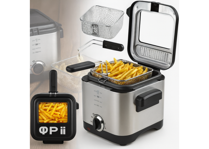 Фритюрниця Crownberg CB-5542 призначена для приготування хрустких страв у фритюрі в домашніх умовах. Компактний об'єм 1,5 літра та потужність 1200 Вт роблять модель зручною для щоденного використання, даючи змогу готувати картоплю фрі, закуски та інші страви з контролем температури.