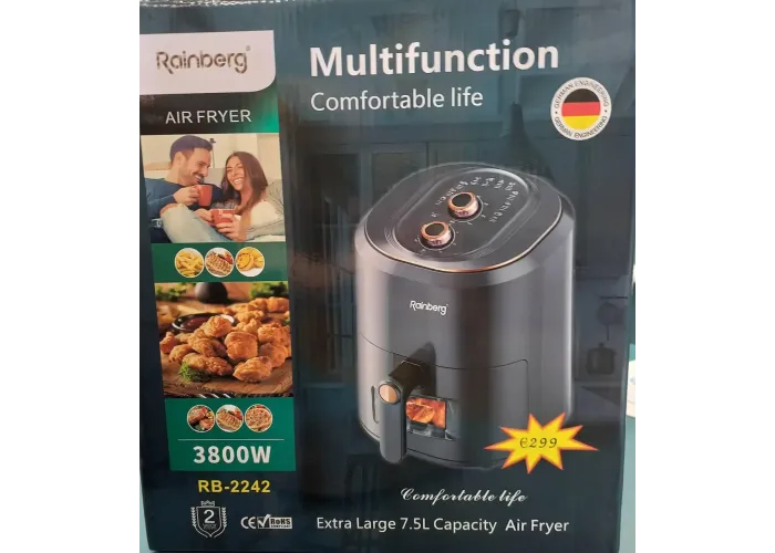 Оскільки Фритюрниця Rainberg використовує гаряче повітря для приготування їжі, ви можете насолоджуватися приготуванням їжі без олії або додати кілька крапель у їжу для додаткової хрусткої скоринки! Використання меншої кількості олії означає, що ви вживаєте здорову їжу, що містить до 80% менше жиру, ніж їжа, приготована в традиційній фритюрниці.