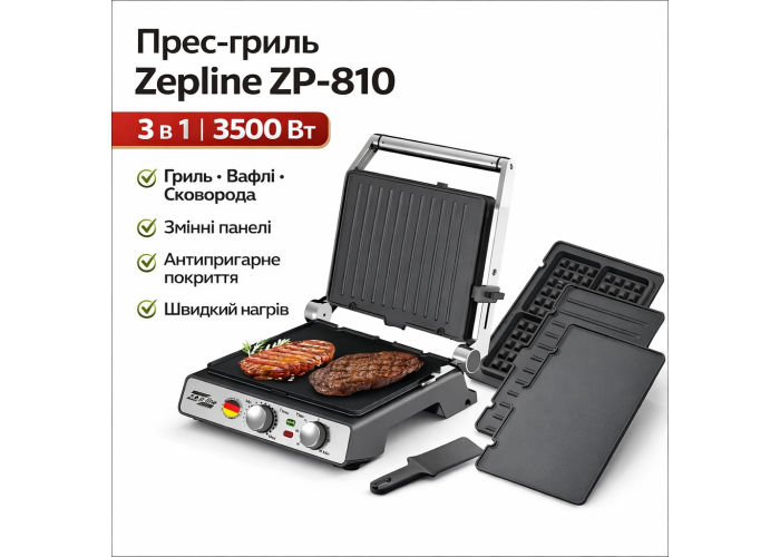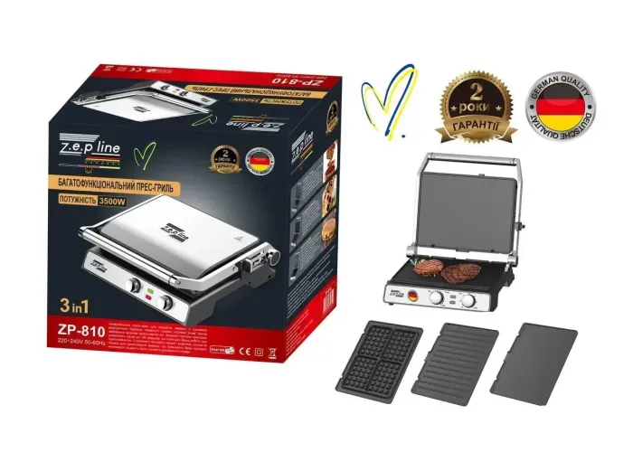 Багатофункціональний прес-гриль Zepline ZP-810 3в1 — це ідеальний вибір для тих, хто цінує зручність, багатофункціональність і високу продуктивність на кухні. Завдяки потужному нагрівальному елементу 3500 Вт, пристрій дає змогу готувати швидко, рівномірно та з мінімальними зусиллями. Він підходить як для повсякденного приготування, так і кулінарних експериментів.