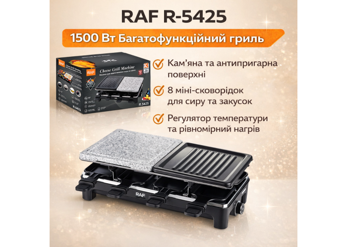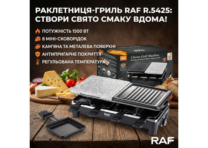 Електричний гриль RAF R-5425 — універсальний кухонний пристрій для приготування м'яса, риби, овочів, сендвічів та інших страв прямо вдома. Він обладнаний потужним нагрівачем 1500 Вт, який забезпечує швидке розігрівання та рівномірний розподіл тепла для якісного просмажування продуктів. Антипригарні панелі не дають змогу їжі прилипати та полегшують очищення після використання.