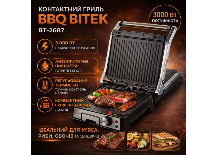 Гриль BBQ BITEK BT-2687: Насолоджуйтеся смаком барбекю цілий рік!