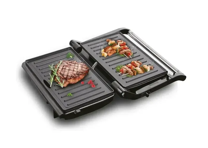 Протипригарне покриття пластинка готування стає простою і швидкою, а зручні робочі поверхні, що розкриваються на 180 градусів, дають змогу вам приготувати кілька страв одночасно.