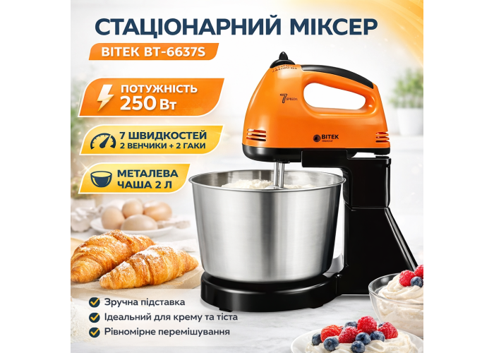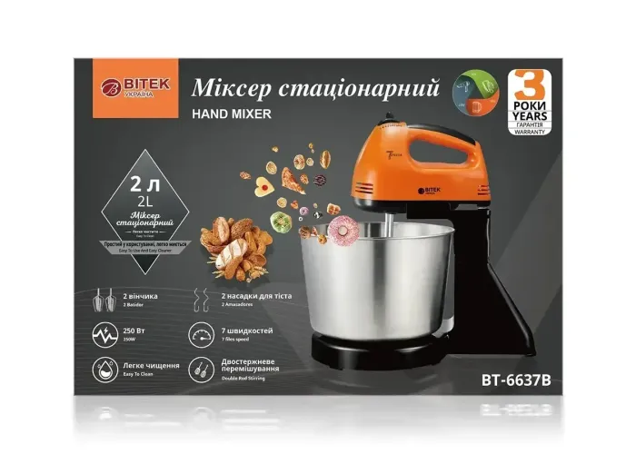 Міксер стаціонарний із металевою чашею BITEK BT-6637S 250 Вт Кухонний електричний міксер