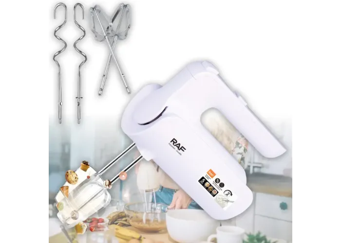 Міксер електричний ручний на 5 швидкостей із 4 насадками RAF R.6653 800 Вт Білий