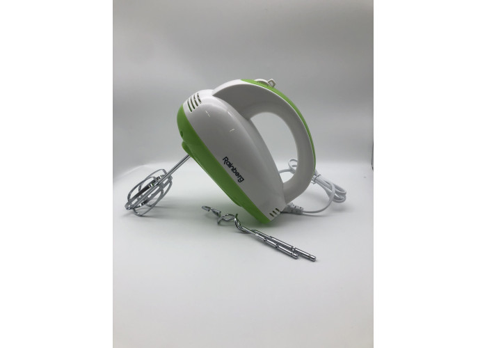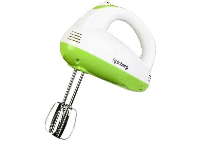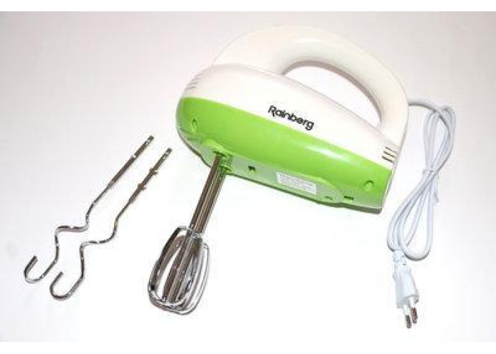 Ручний міксер Rainberg належить до типу досить компактних, але дуже потужних моделей із мотором, максимальною потужністю 400 Вт. Цей прилад обладнаний 5 швидкісними режимами роботи, що дають змогу ефективно збивати продукти різної щільності. У комплекті з міксером Ви знайдете додаткові гаки для замішування тіста, що гідно зможуть оцінити ті господині, які люблять тішити свою сім'ю різними випічками. А два віночки для збивання дадуть змогу швидко та якісно збити потрібний Вам продукт. За допомогою ручного міксера Rainberg ви з легкістю потішите всю сім'ю смачним повітряним десертом.