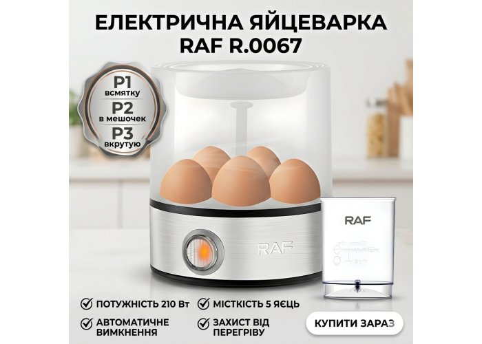 Електрична яєчнарка із захистом від перегрівання та автоматичним вимкненням RAF R.0067 210W