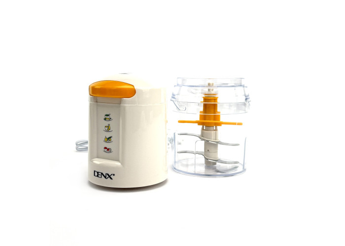Компактний чопер-подрібнювач DENX DX2050 — зручний побутовий прилад для швидкої підготовки інгредієнтів (лук, зелень, горіхи, овочі та ін.) у домашніх умовах. Має чашу об'ємом 0,5 л і просте керування, що робить його чудовим помічником на кухні для дрібних кулінарних завдань.